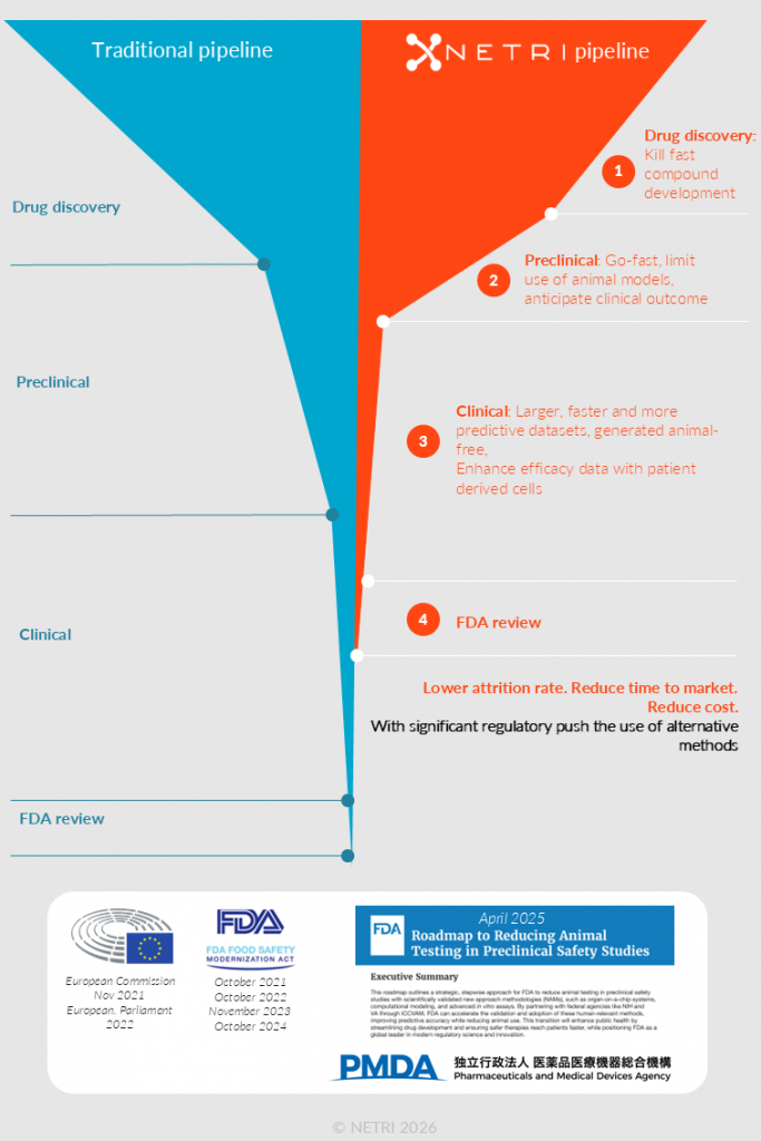 By offering human-relevant models with superior predictivity and translatability, NETRI's technologies reduce reliance on non-representative animal testing, lower overall development costs, and enable earlier detection of compound limitations.